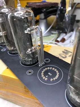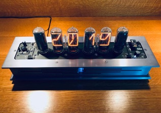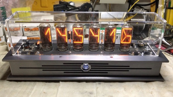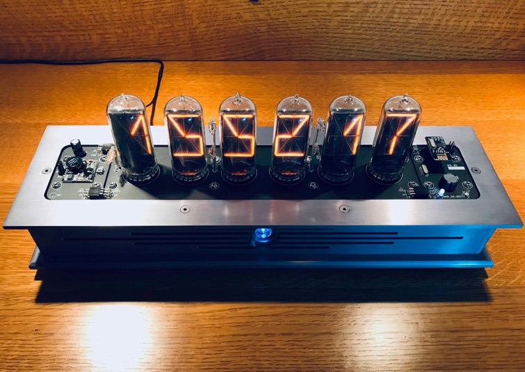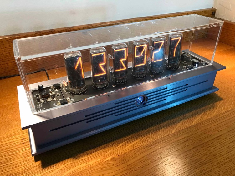 Identical in feature and functionality to our Black Emerald B8971 clock, this version sports an enclosure in Krell grey, similar to the beautiful sanded and anodized finish on Legacy Krell Audio gear. PCB's are done in flat black, colon towers are Sterling silver tube, and the front beacon and PCB LEDs are white ( even tho they both look blue) vs. the green LED’s used on the Black Emerald. The flat head bezel screws are MoS2 finished to match the beautiful gray anodized aluminum. All visible components are black vs. the green used on the earlier clock. This is a ONE-OFF only and will not be available for sale unless we get requests for at least 10 of these! The tubes are the problem, I would gladly make more of these were there tubes available.
